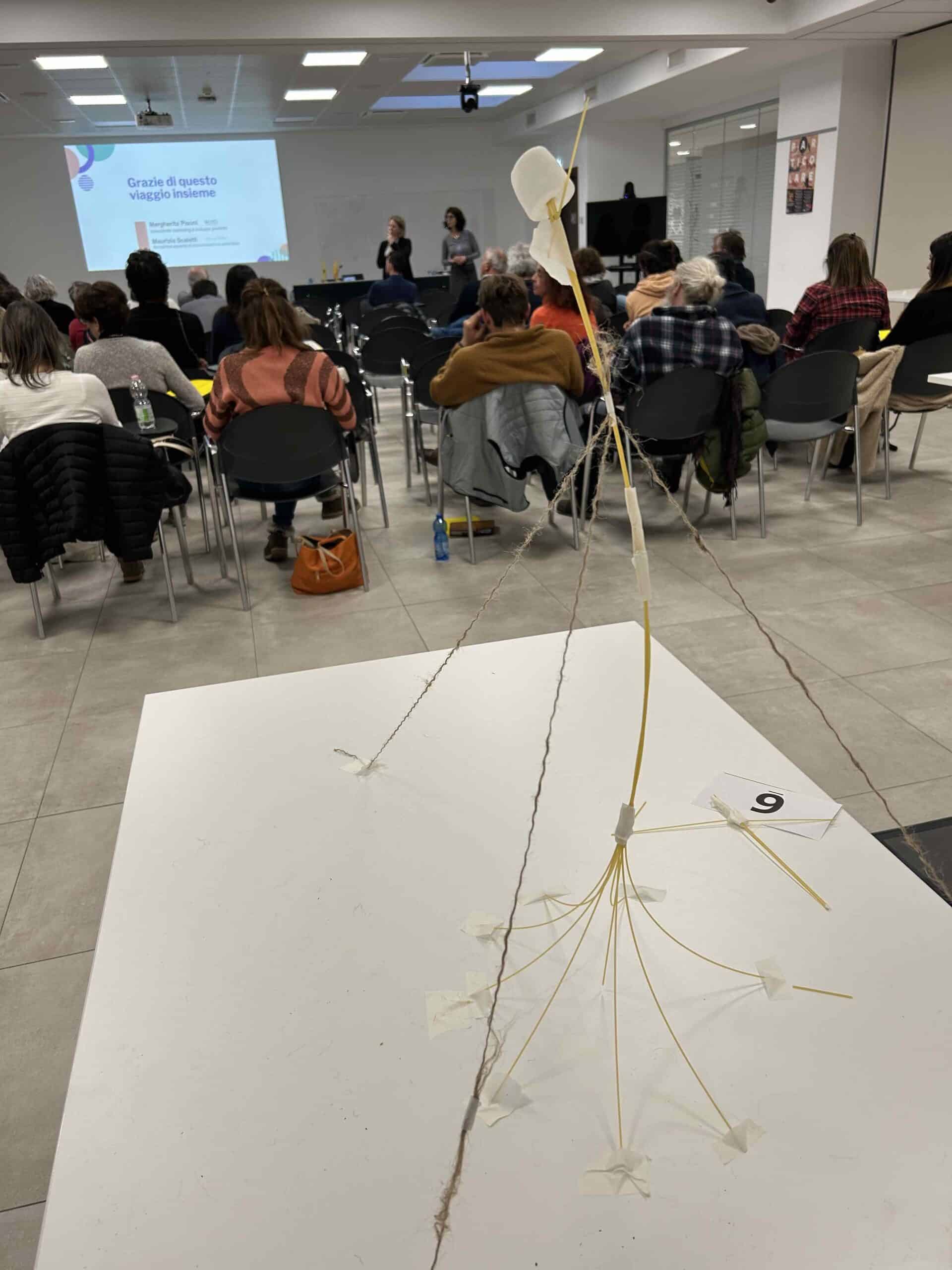 Una fase laboratoriale emozionante ha coinvolto gli agricoltori nel “Marshmallow Challenge”, un esercizio di team building che ha incoraggiato la collaborazione e la creatività.